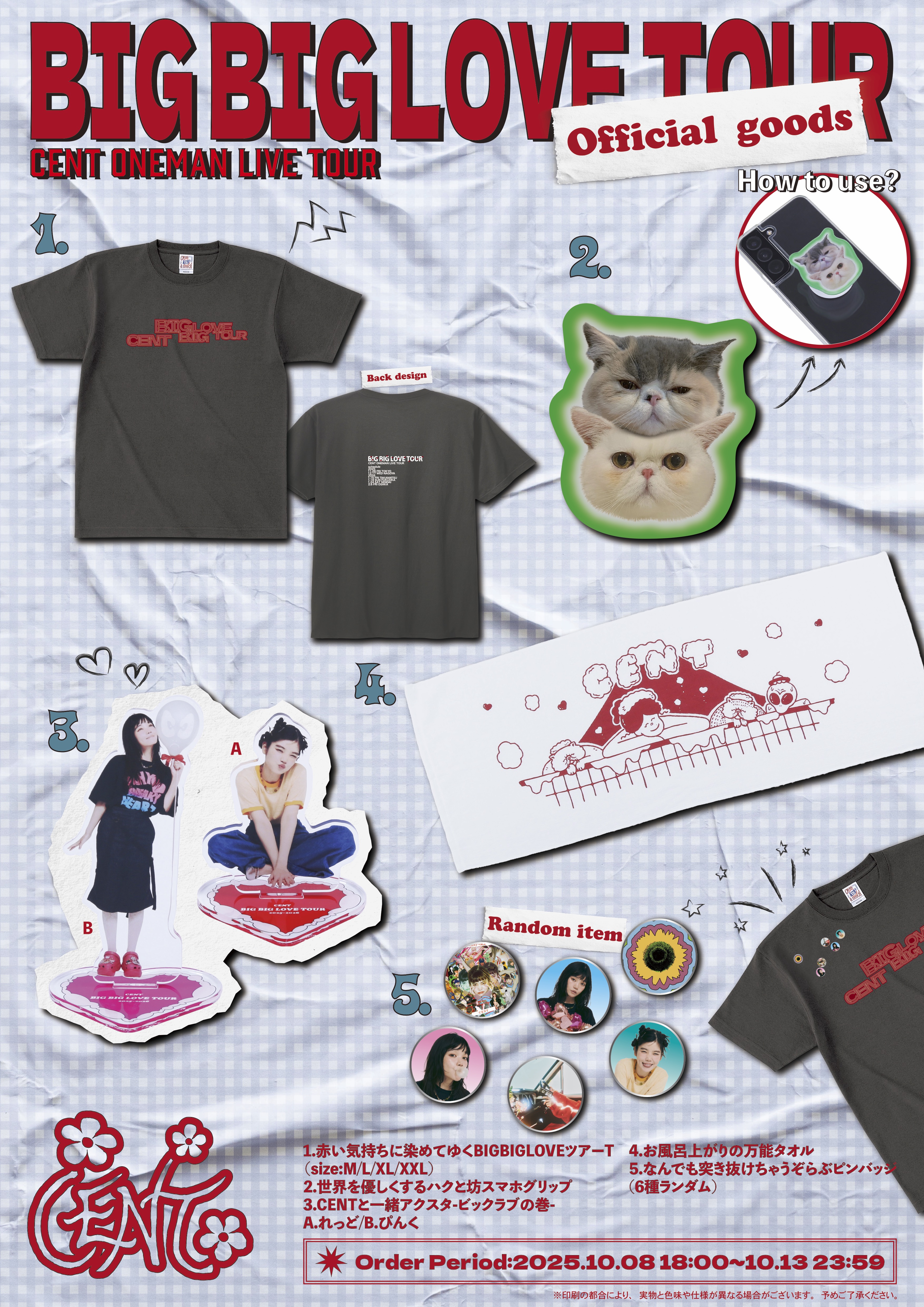 2025年11月28日(金)から開催されるCENT ONEMAN LIVE TOUR「BIG BIG LOVE TOUR」のグッズの発売が決定いたしました!