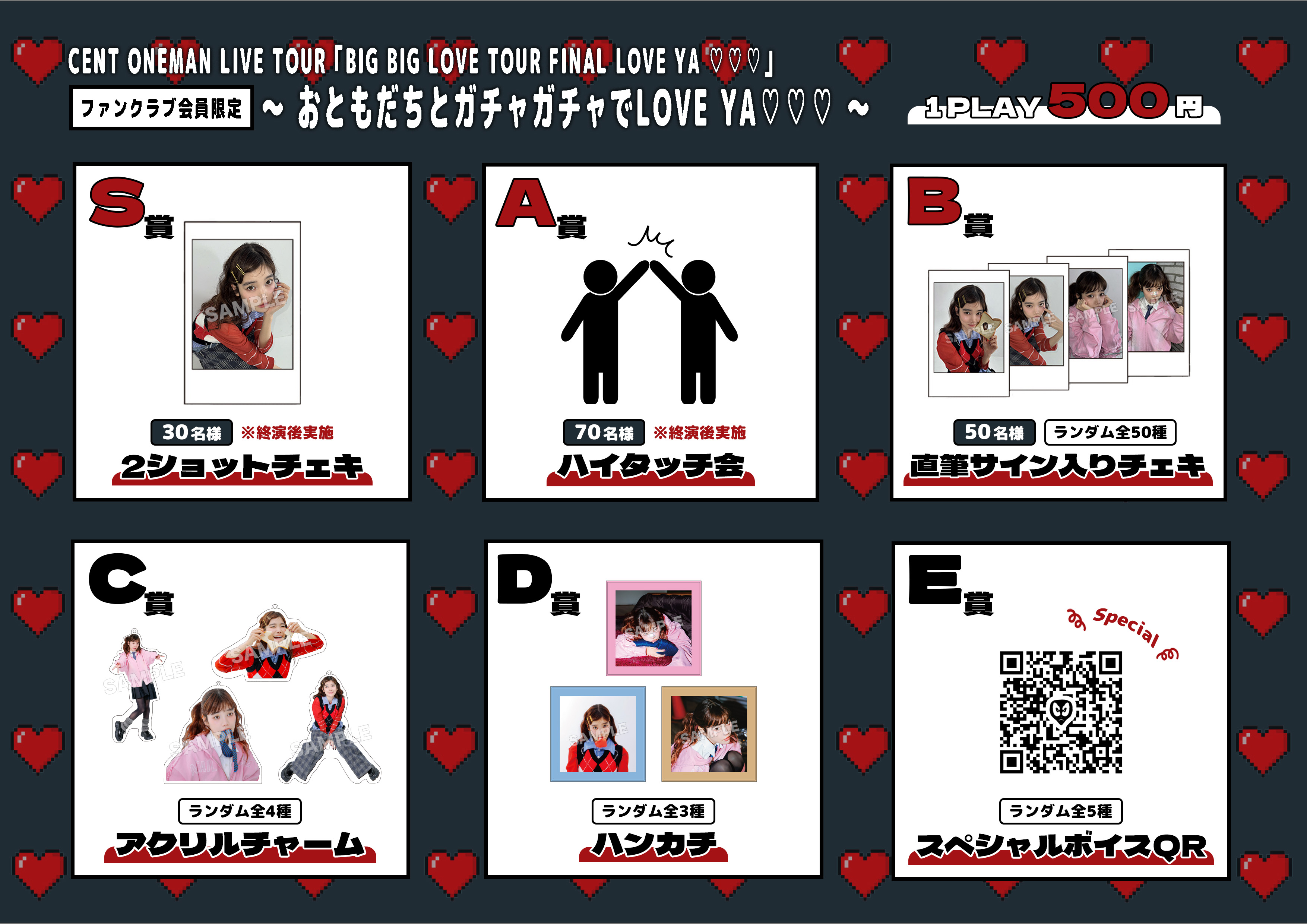 CENT ONEMAN LIVE TOUR「BIG BIG LOVE TOUR FINAL LOVE YA ♡♡♡」では、これまで各会場で実施しておりました【ファンクラブ会員限定 大抽選会】の実施はございません。